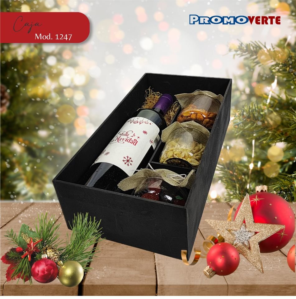 ✔Caja con botella de vino tinto Cuatro Soles,
