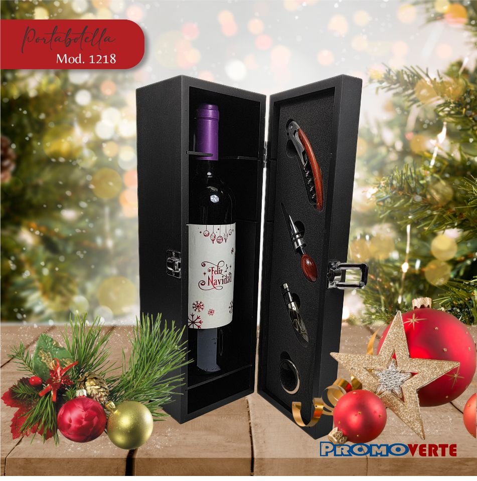 ✔ Portabotella con botella de vino tinto