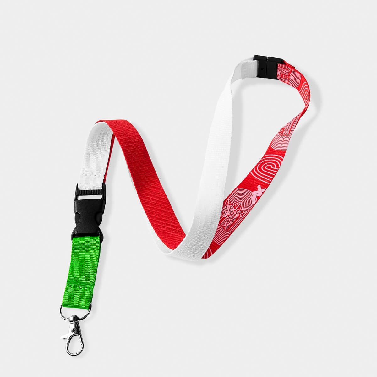 Portagafete tricolor con diseño inspirado en México. Incluye broche de seguridad, clip desmontable y gancho giratorio. Ideal para credenciales, llaves o tarjetas. Perfecto como souvenir o para eventos.